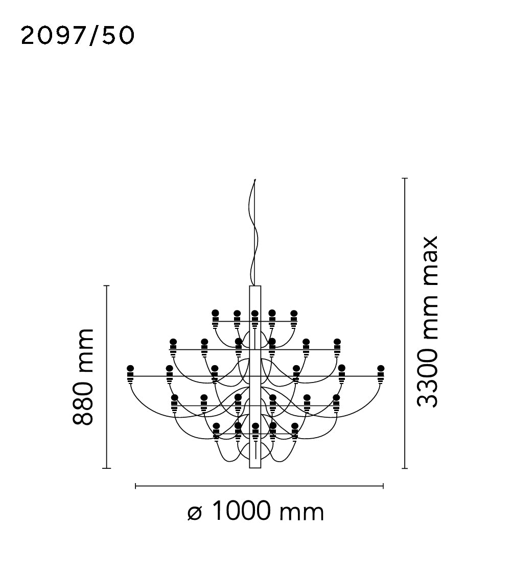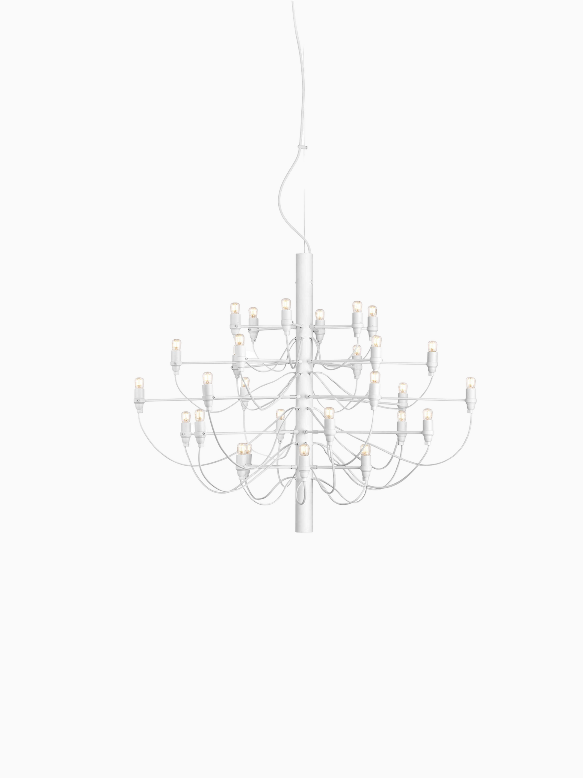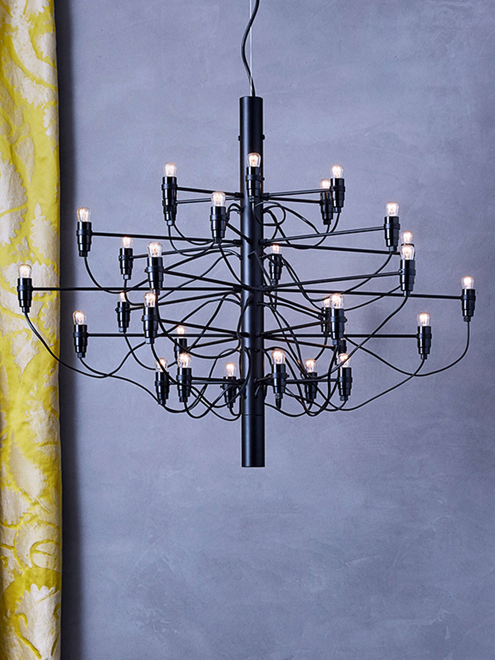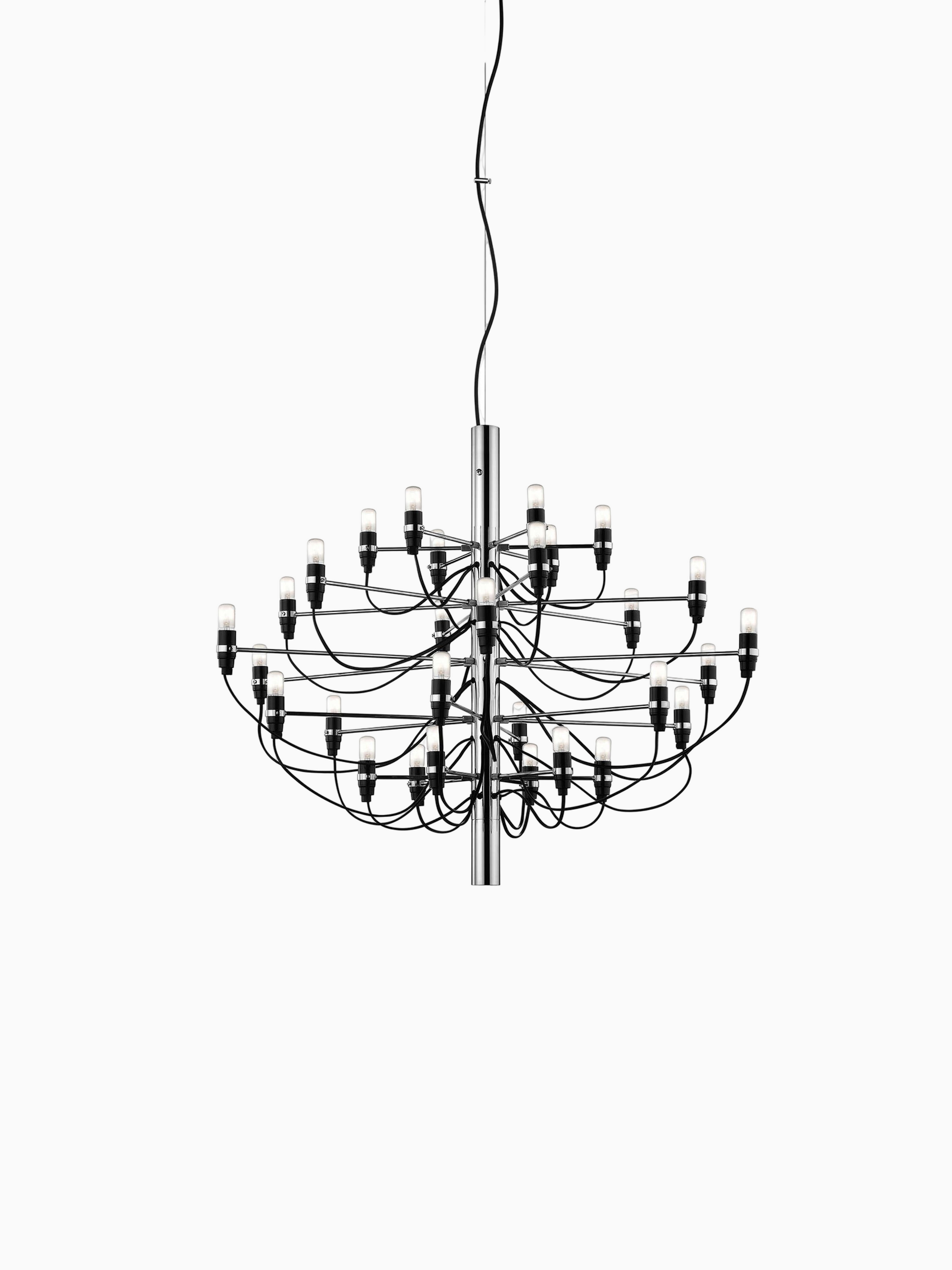 La lámpara 2097 de Flos, diseñada por el legendario Gino Sarfatti, es una reinterpretación moderna de la clásica lámpara de araña. Este icono del diseño combina la elegancia del estilo mid-century con una estética industrial contemporánea, convirtiéndose en una pieza única que eleva cualquier espacio.