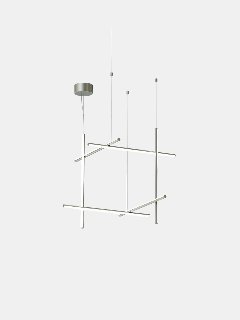 La lámpara suspendida Coordinates de Flos es una obra maestra de diseño contemporáneo que combina líneas geométricas precisas con iluminación de última tecnología. Fabricada en aluminio anodizado extruido con un elegante acabado en tono champán, esta luminaria destaca por su sofisticación y versatilidad.