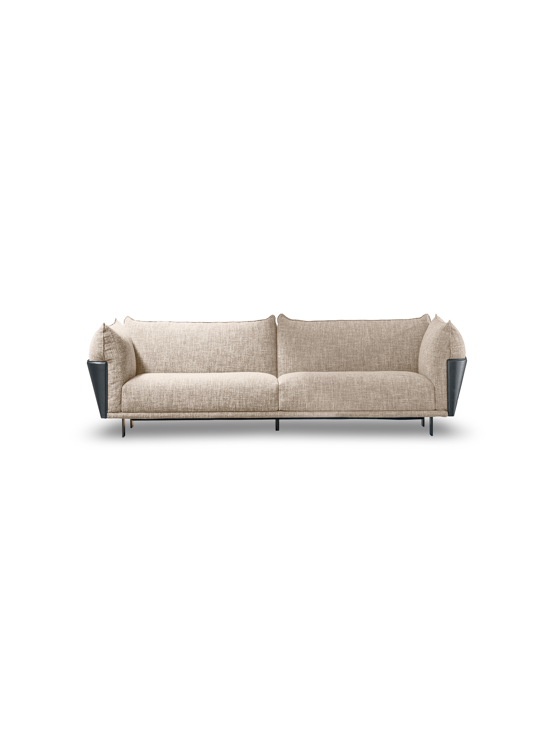 El sofá BLEND de Bonaldo destaca por su diseño italiano contemporáneo y la cuidada combinación de materiales de alta gama como el cuero y el tejido. Su estructura perimetral revestida en piel enmarca elegantemente un acolchado envolvente y confortable, creando un equilibrio perfecto entre rigor estético y suavidad visual. Ideal para salones modernos que buscan estilo y sofisticación.