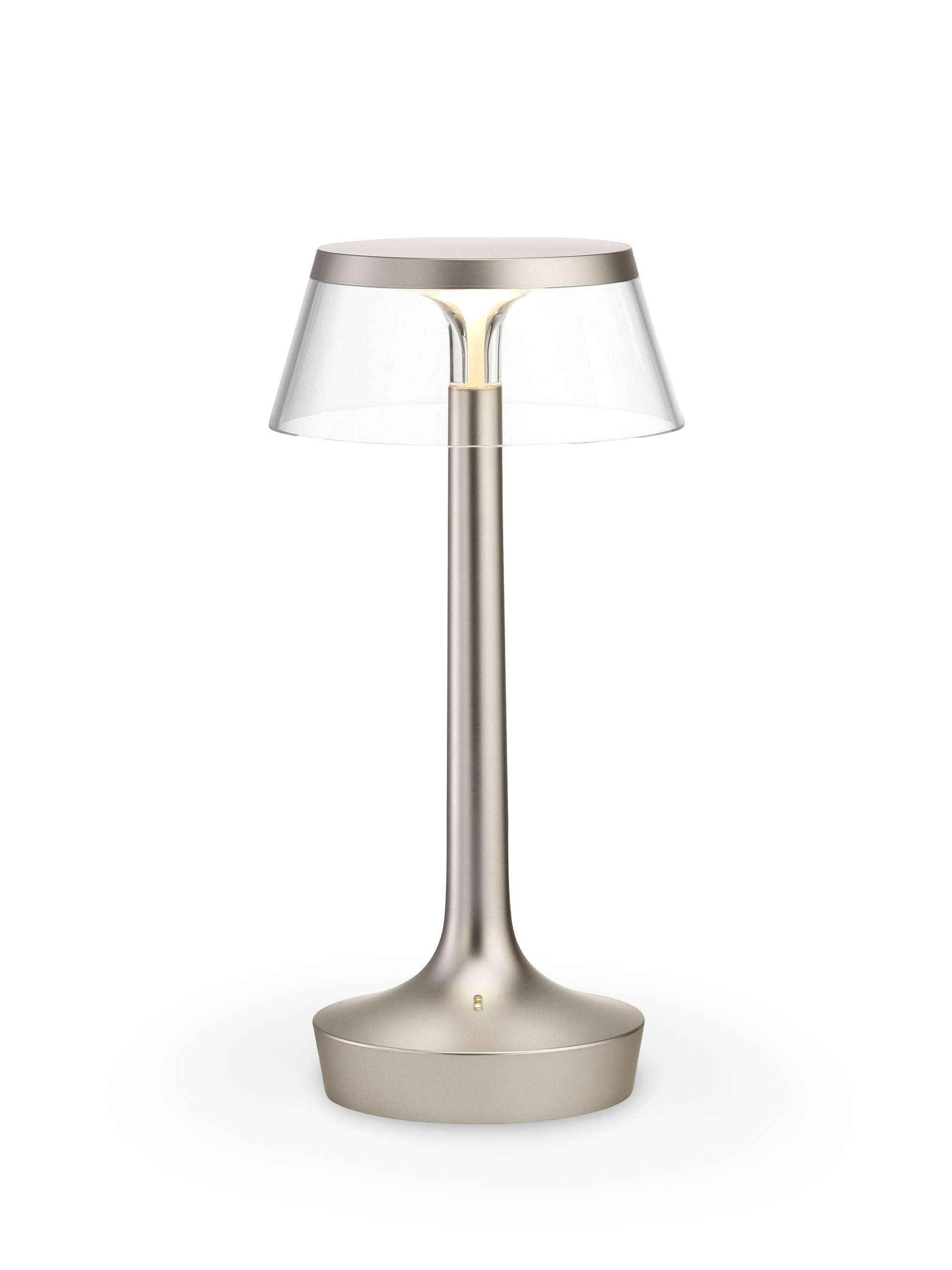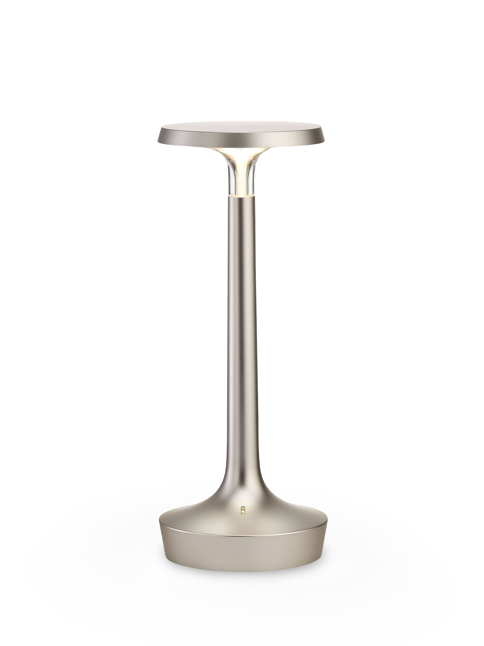 La lámpara Bon Jour Unplugged de Flos combina un diseño sofisticado y funcionalidad inalámbrica, ofreciendo la máxima versatilidad para iluminar cualquier espacio. Su batería recargable, mediante un alimentador incluido y una interfaz MicroUSB-C de última generación, proporciona entre 6 y 24 horas de autonomía, dependiendo de la intensidad luminosa seleccionada.