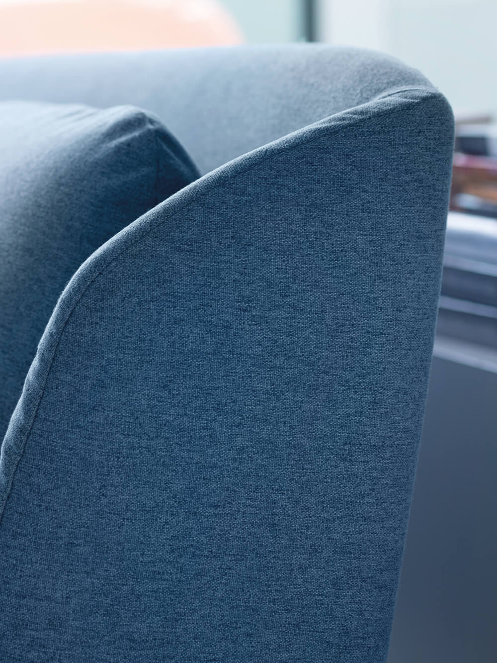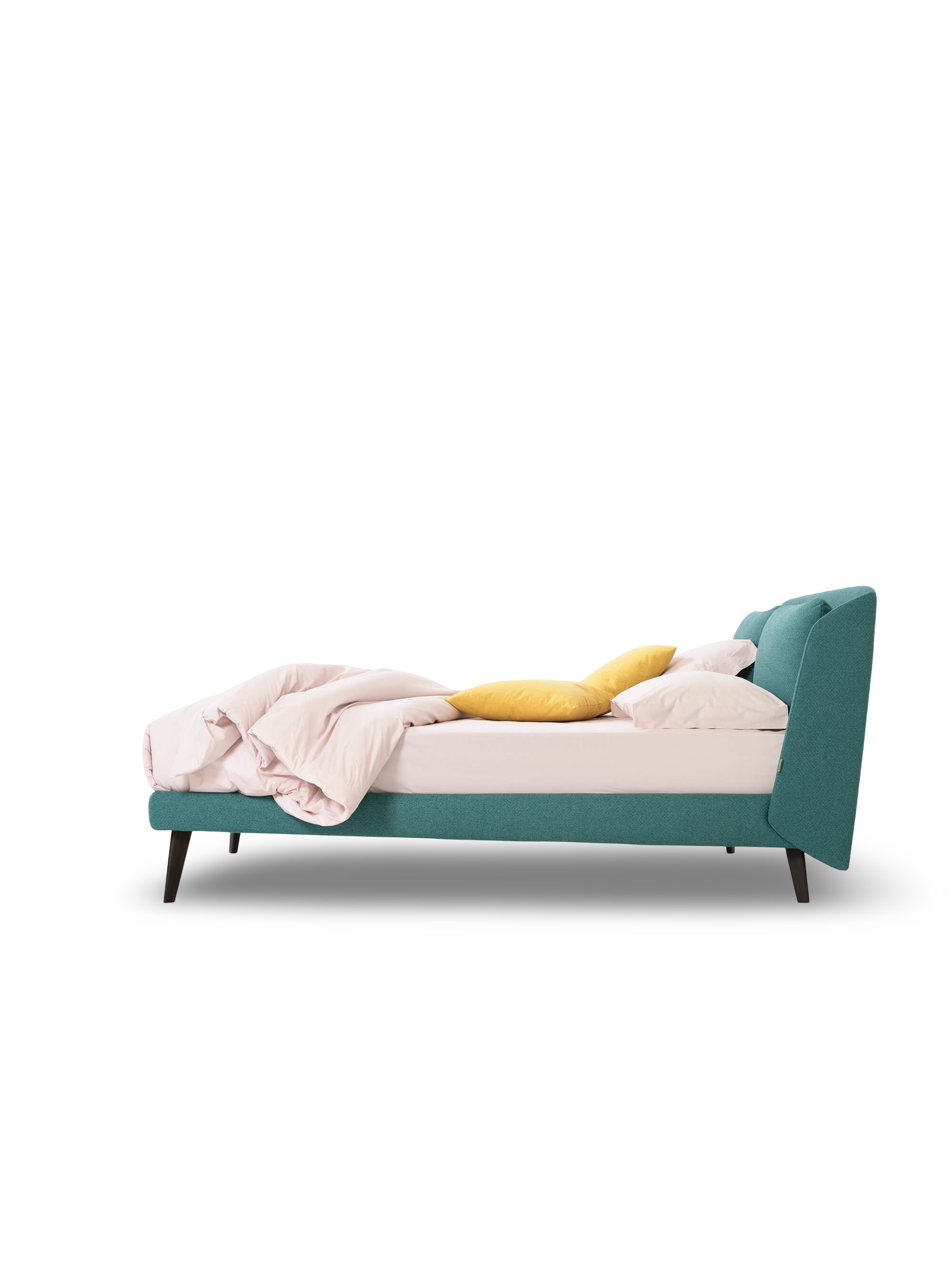 Destaca su cabecero envolvente en forma de alas, que no solo aporta carácter y personalidad, sino que también abraza la estructura de la cama. Incluye cojines de viscoelástica extraíbles y personalizables, diseñados para brindar un confort excepcional y adaptarse a las necesidades individuales.