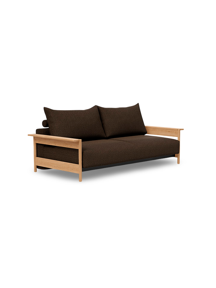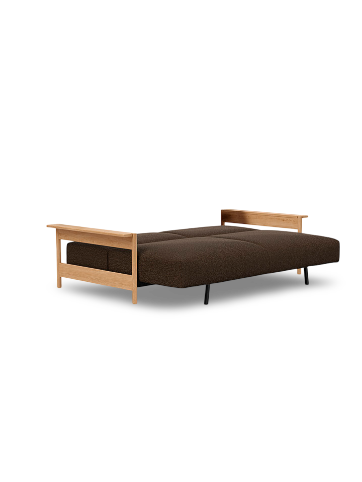 El sofá cama Malloy Wood de Innovation Living destaca por su elegancia escandinava, perfecta para quienes valoran diseño, funcionalidad y calidez natural. Con estructura robusta y reposabrazos en roble macizo que funcionan como mesa auxiliar, combina confort y estética artesanal. Su asiento amplio, respaldo alto y colchón integrado permiten convertirlo fácilmente en una cama tamaño queen, ideal para invitados o uso diario. Una solución sofisticada para espacios contemporáneos, disponible en varios acabados.