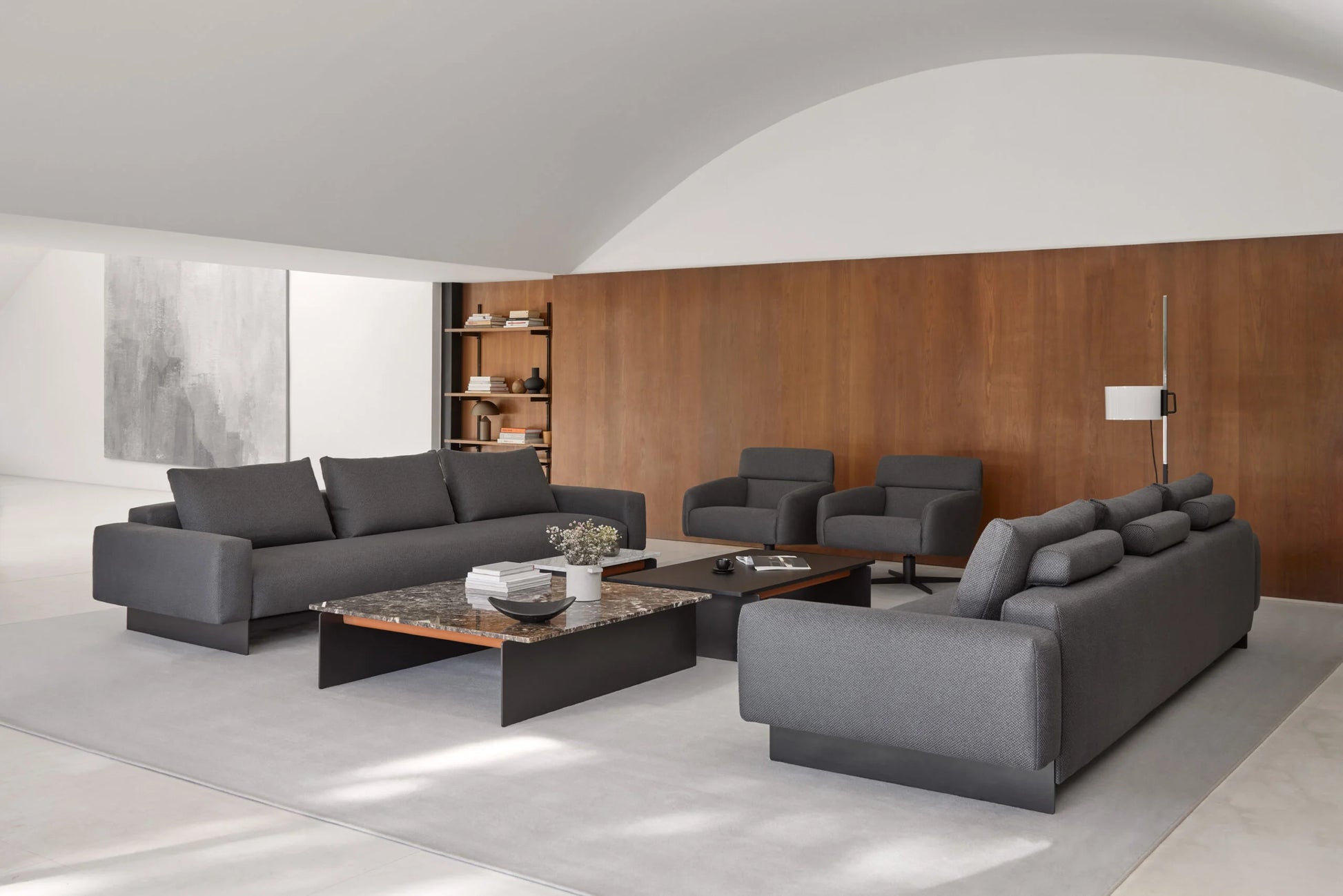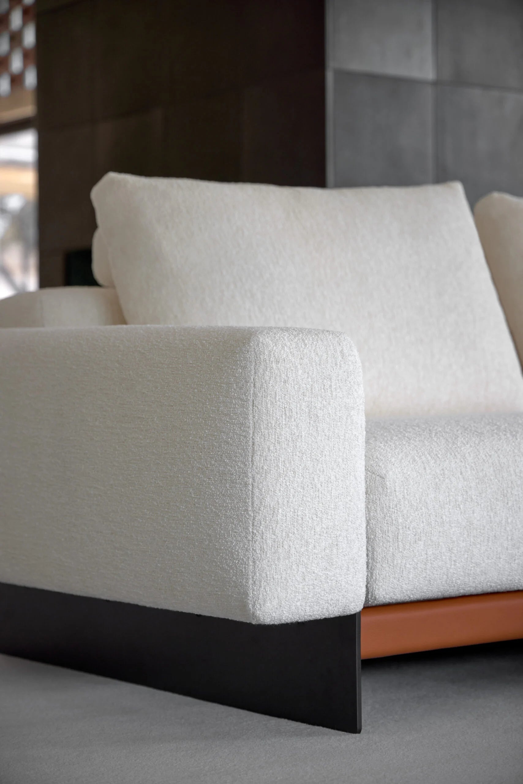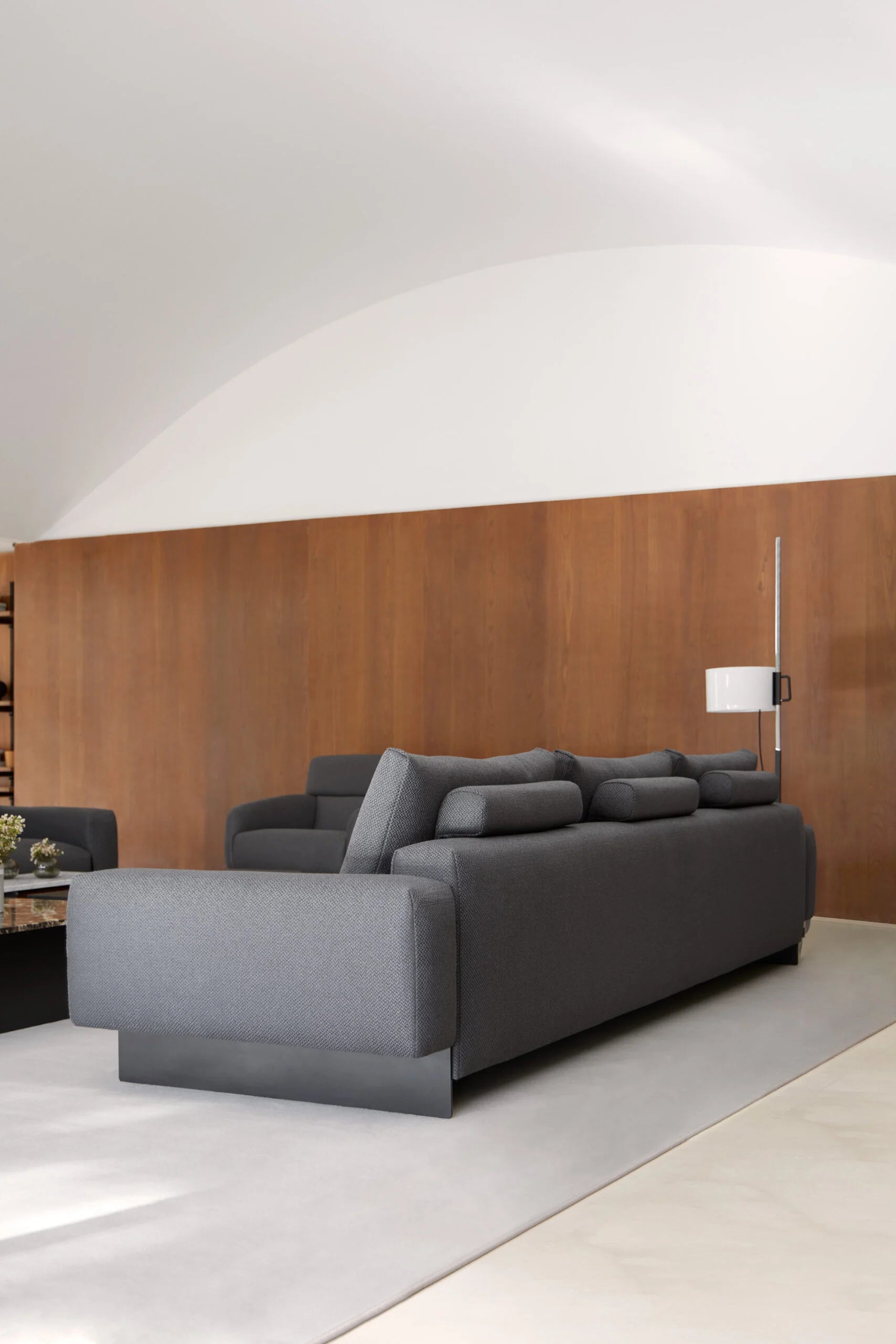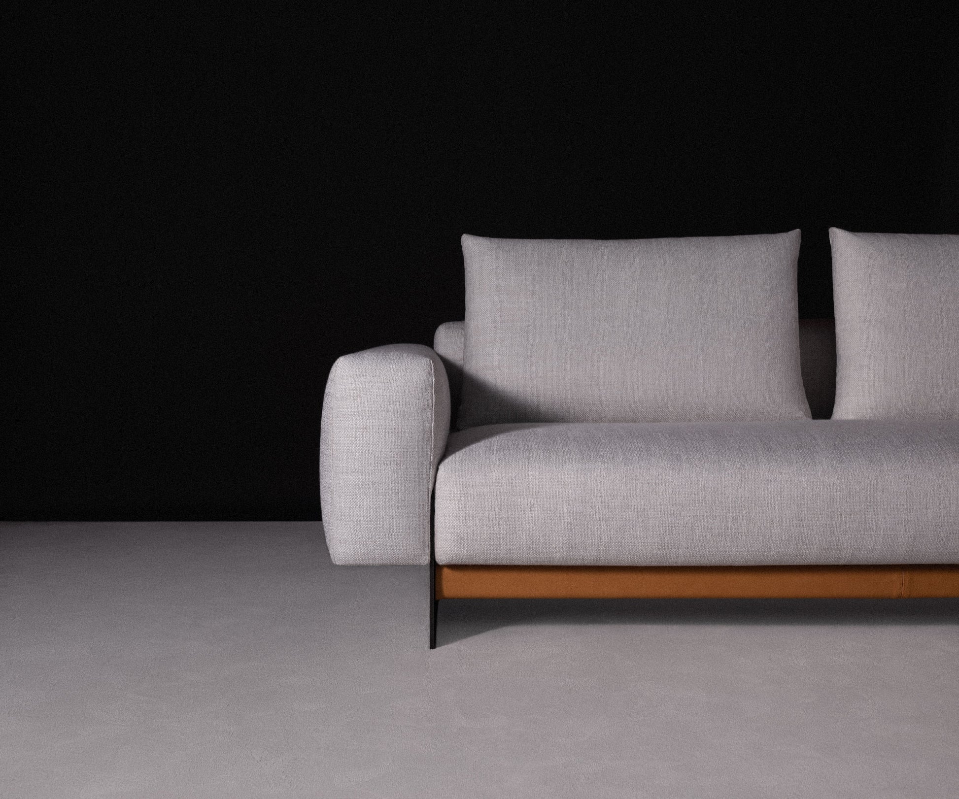 El sofá FRONT de Joquer es una pieza de diseño contemporáneo que destaca por su pureza geométrica y líneas depuradas. Con estructura totalmente tapizada, integra brazos, asientos y reposacabezas en una sola forma continua. Está disponible con base al suelo o suspendida sobre elegantes patas metálicas de perfil delgado, y ofrece tres opciones de altura para los cojines de respaldo, adaptándose a diferentes estilos de confort. Un sofá elegante y versátil, ideal para ambientes modernos con carácter arquitectónico.